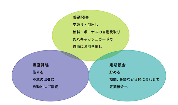 総合口座 普通預金・定期預金・自動融資が一冊の通帳にセットされ 預ける・貯める・使う・借りる という4つの機能を備えた口座です。 また、給与の振込みにもご利用いただけます。 預ける・使う(普通預金) いつでも自由に出し入れができる安全なサイフがわりの預金です。 また、キャッシュカードをご利用になると一層便利です。 貯める(定期預金) スーパー定期預金・大口定期預金・期日指定定期預金でプランに合わせて資金づくり。 借りる(自動融資) いざという時、お預け入れの定期預金の90%(最高200万円)まで自動的に借りられます。 ご返済は、普通預金に預け入れるだけで自動的に返済となります。